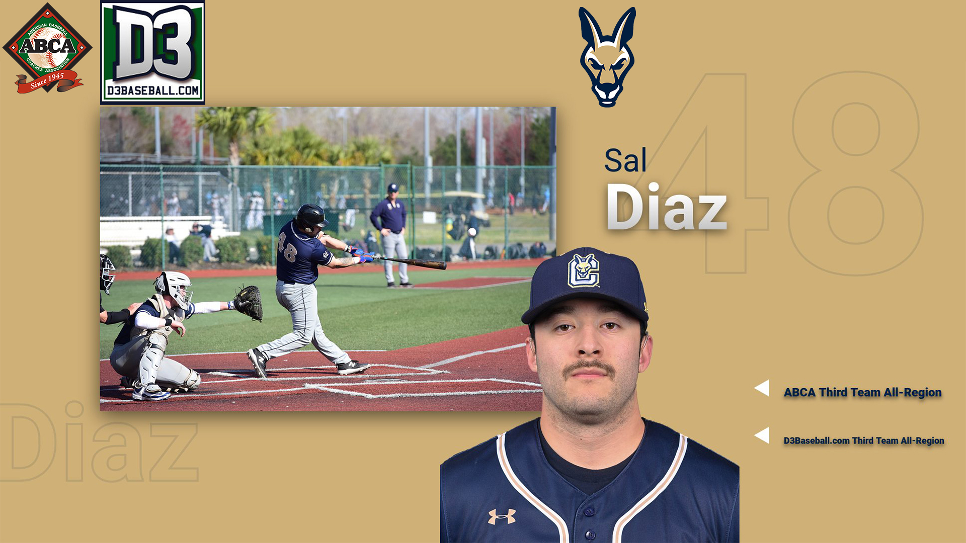 American Baseball Coaches Association (ABCA) and D3baseball.com All-Region Third Team in Region 3. He was also named the SUNY Canton Athletics department's